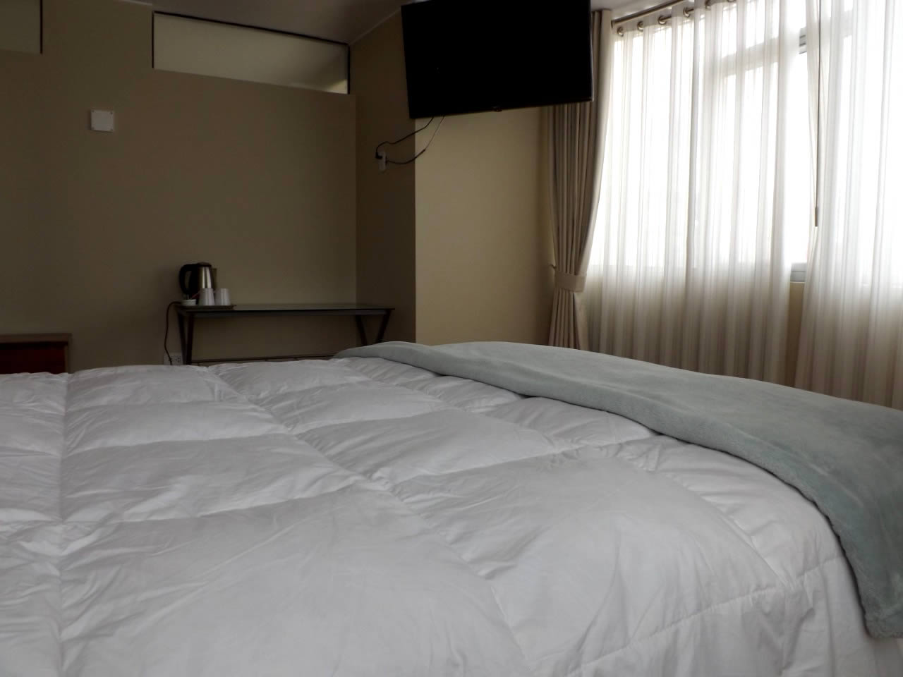 Cama de 2 plazas 135 cm * 190 cm. smart TV. WIFI, baño privado con artículos de higiene también incluye 2 desayunos continentales.
